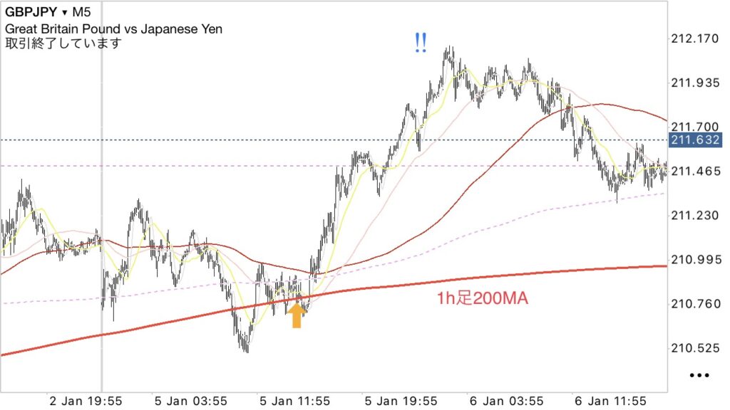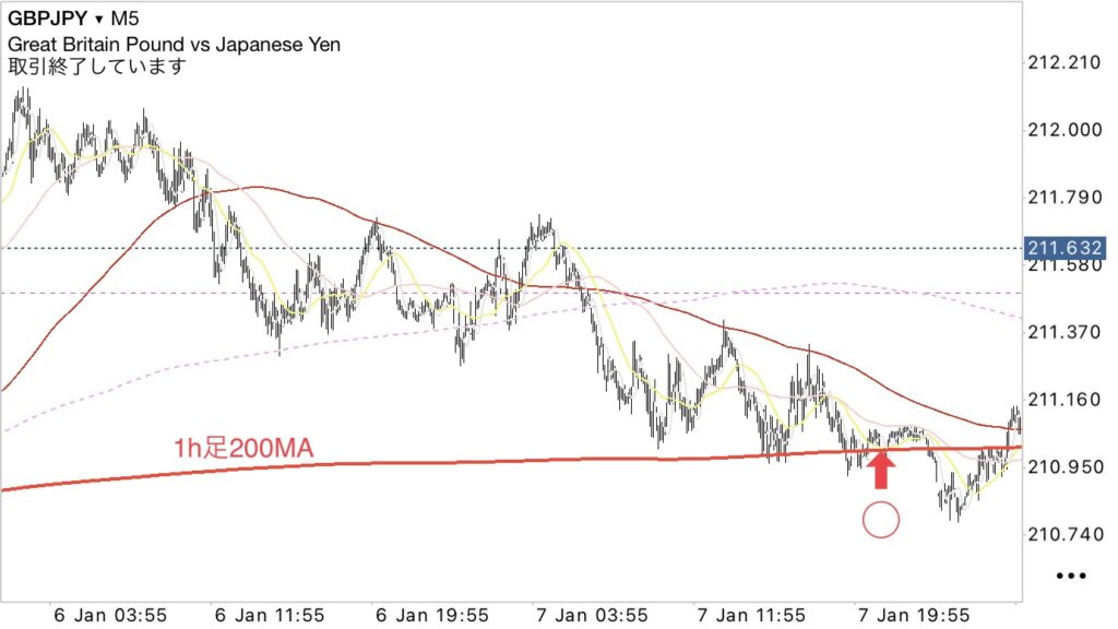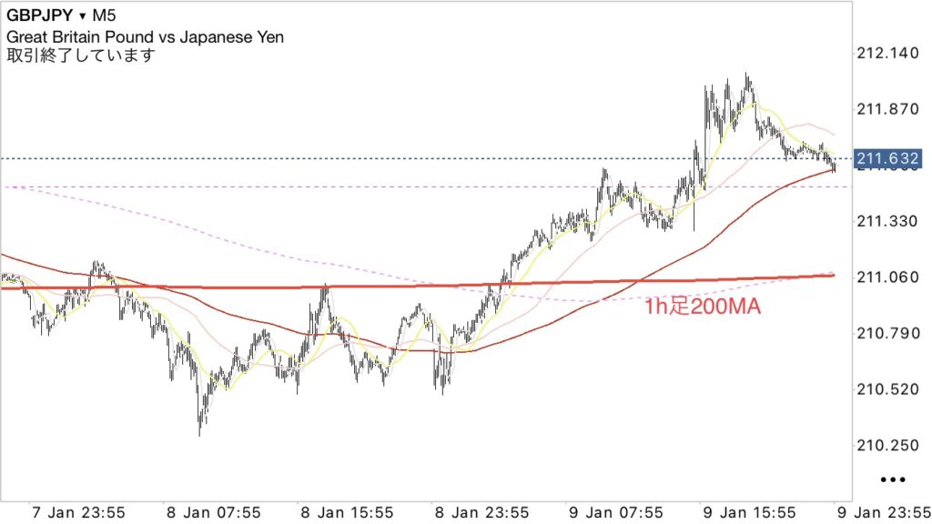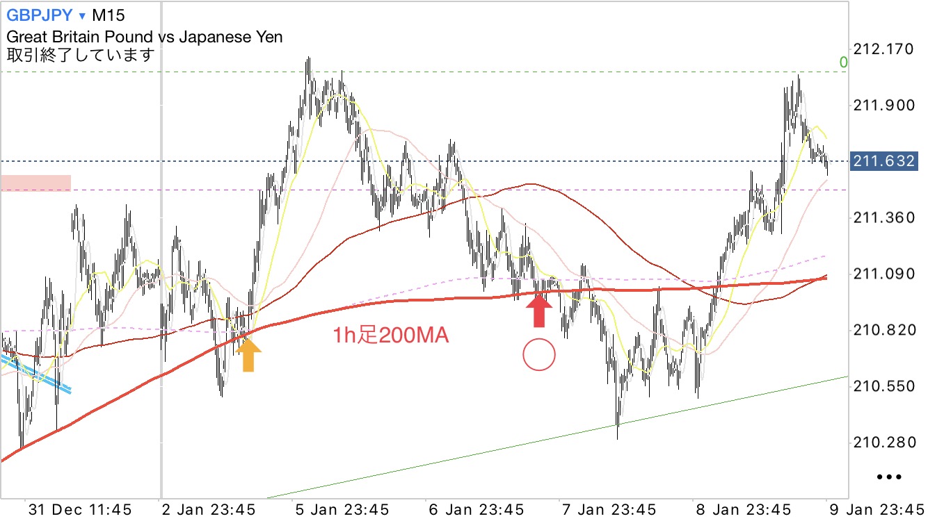 ・シナリオとしては、15分足200MA+1h足200MA辺りで押し目買い狙い。