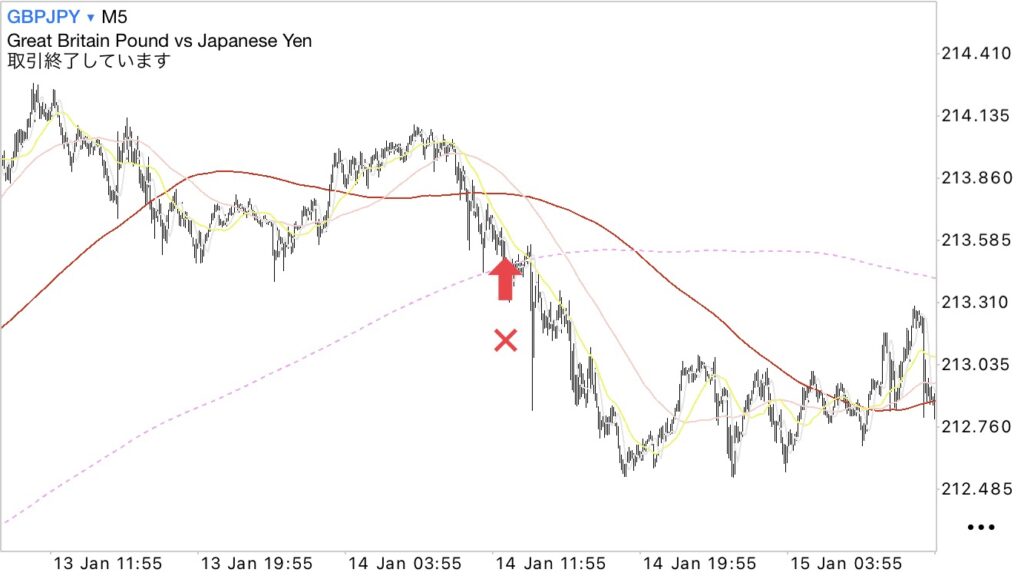 実績① 15分足200MA辺りで押し目買いからの損切り。