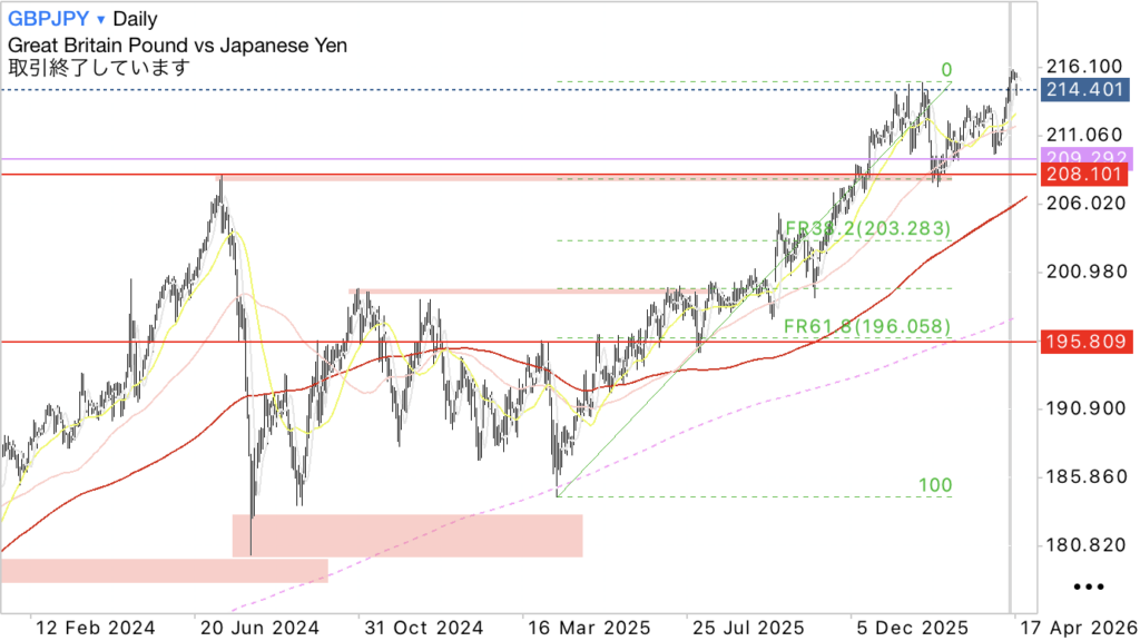 ・日足レベルでは上昇トレンドで高値更新としているので買い目線。