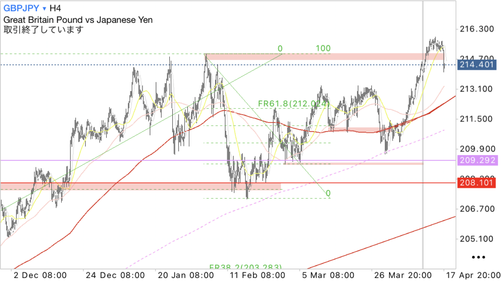 ・4h足レベルでは上昇トレンド中なので買い目線。高値を超えるか様子見。