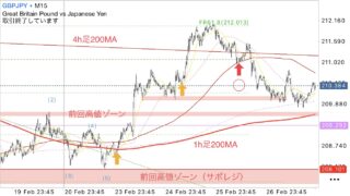 FX 【ポンド円】2026/02/23-27 テクニカル分析と記録 記録 +42.9pips 良いところでは入れなかったけど、シナリオ通りに動いてる テクニカル分析 日足/4h足/1h足 ・日足レベルでは上昇トレンドで高値更新としているので買い目線。 ・... 2026.03.01 FX